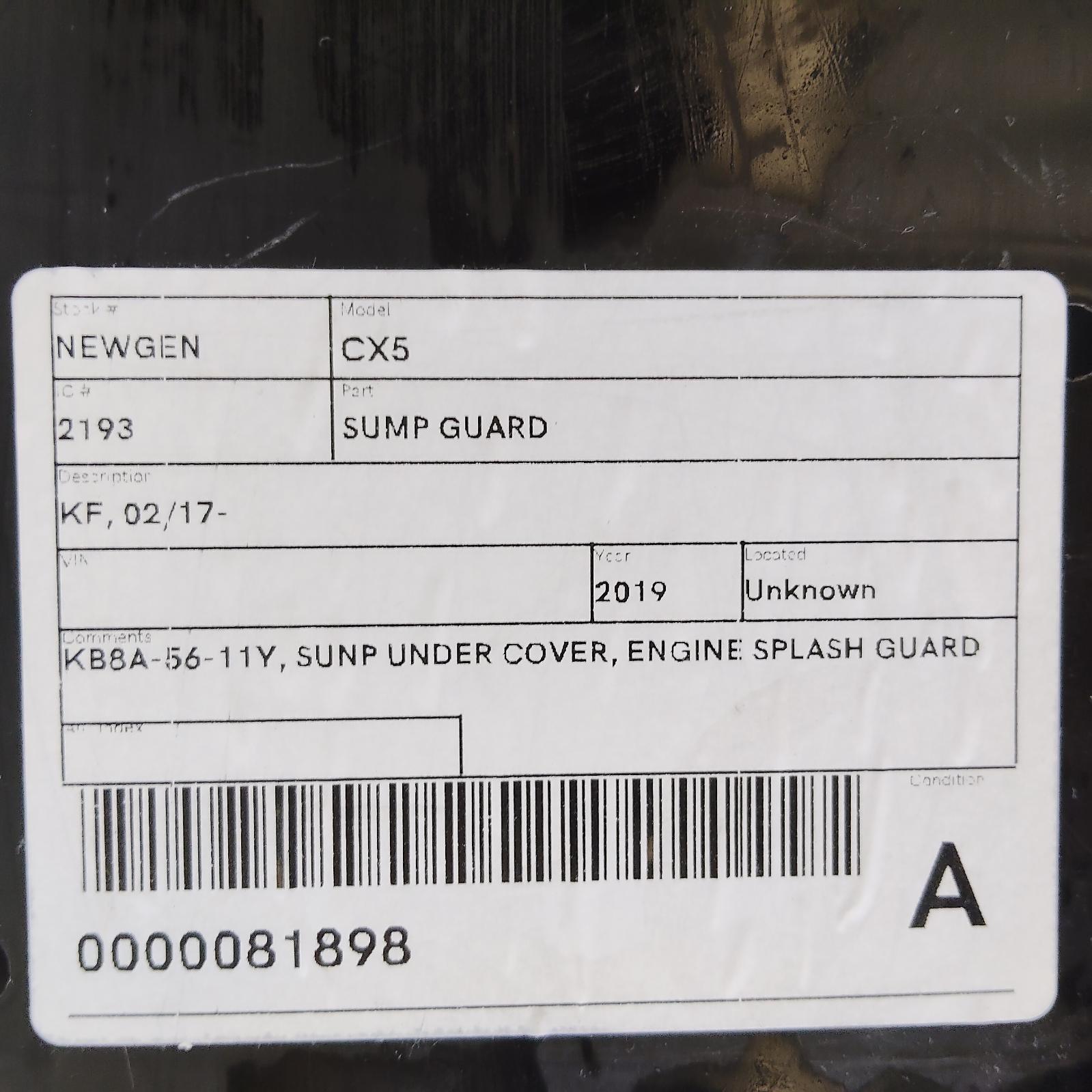 KB8A-56-11Y, SUNP UNDER COVER, ENGINE SPLASH GUARD: 81898
