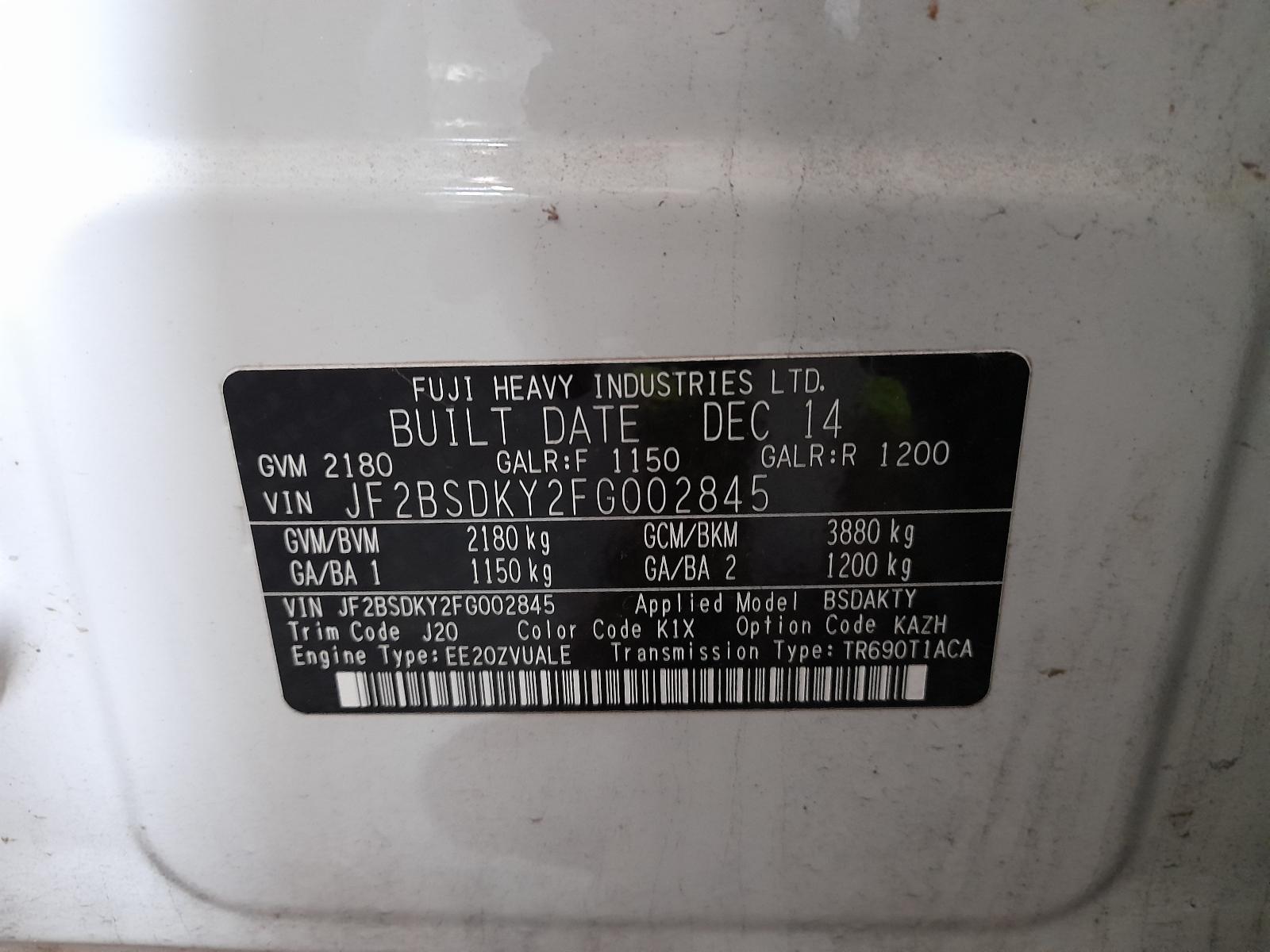 DIESEL, 2.0, EE20, EE20ZV, TURBO, 6TH GEN, 08/14-12/20