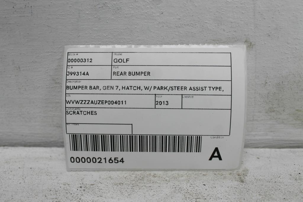 BUMPER BAR, GEN 7, HATCH, W/ PARK/STEER ASSIST TYPE, 11/12-03/17